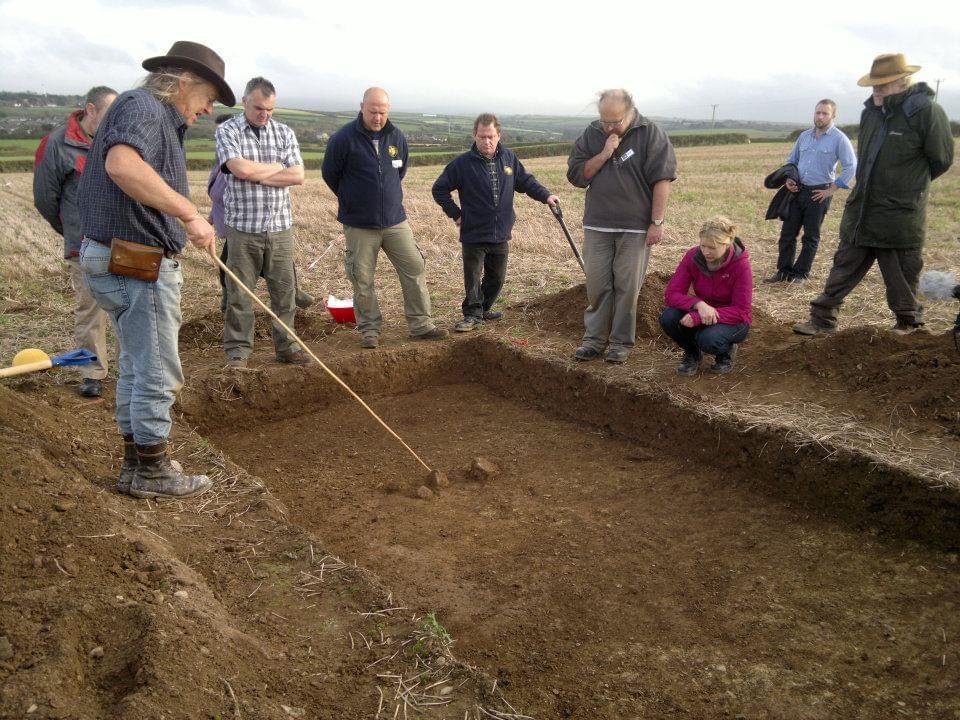 I took the train again for the short journey to Quintrell Downs and met up with my fellow club members at the Premier Inn our base for the duration. Tim greeted me like an old friend and we all had a great night and several beers. The next day we undertook some training nearby studying Maps of the area. We had lectures from Tim talking about what the weekend would consist of and what we’d be up to. He told us the mini excavation we would be involved with was of a mystery site about which very little was known. Phil Harding talked about excavation techniques, Carl Thorpe explained about the local area and our archaeological target. Jim Mower talked about how the production team choose a site and John Gater talked about various aspects of Geo Physics and that he’d already surveyed the site. We had a big reveal of the exciting results. Dani Wootten talked about field walking and small finds identification. The main principle I took away from them all this was do not, under any circumstances, start digging until you’ve done all of your research properly and got the relevant permissions. We also had a candle lit tour of Trerice Elizabethan Manor House which was good fun. https://www.nationaltrust.org.uk/trerice