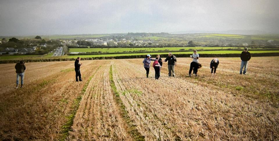 The field walkers looking for surface finds.