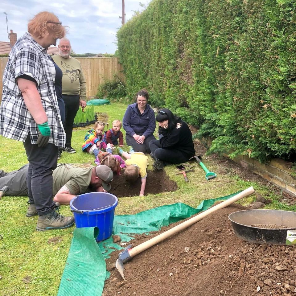 Wednesday morning our first day digging. Chatting with Richard he introduced me to Kenny, an ex army veteran who took part in the Operation Nightingale Time Team episode at Barrow Clump and has since gone on to become a professional archaeologist and a lovely chap to boot! He’ll make a great digging buddy, so I asked him to join me. We got assigned to dig the back garden of a bungalow, home to Iris and her husband. John Dymond, curator of the local Museum introduced us to Iris it was her 89th birthday and she was pleased as punch to have Time Team digging in her back garden. Iris, kept us supplied with tea and coffee it was quite warm, so this was very welcome. Once we’d decided where to dig, we broke ground and removed the turf. We had a few finds in the top two contexts but nothing too exciting. The time flew by, various people popped in to see how we were getting and before we knew it was it was 4.30. We packed away the tools and headed over to the ‘show and tell’ that Richard Osgood did with the rest of the team everyday. There were British military veterans (vet’s), American vet’s and serving British and American military personnel as well as Time Team and Operation Nightingale. The evidence of Nissen huts were beginning to appear along with lots of finds indicating a military presence on the site. I discovered things were a bit more relaxed with Richard in charge we had 9 days of digging as opposed to the manic 3 day Time Team digs I’m used to! The ethos of Op Nightingale is archaeology, well being and enjoyment which was great. We spent the evening with some of the team in the pub drinking, laughing and exchanging stories. A good first day.