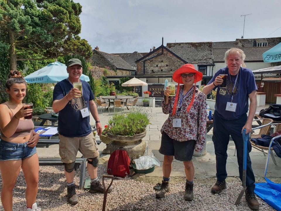 Test pit in the Exeter Inn beer garden. My day two test pit team below. Thanks to Philip Webber for the photographs.
