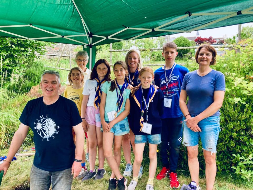 Dani collars us on the car park saying she needs someone to look after the local Scout troop and put in a test pit with them. Simon immediately takes two steps back so it looks like I’ll have the pleasure of showing the Scout troop the ropes. We skip the morning meeting and head straight to the Exeter Arms and after an hours intensive mattocking and digging I pass the reins on to Simon assisted by Phil and Ruth. l head up the street to meet Nigel who lives in the old Rose and Crown pub now a private residence. The Scouts are waiting and after introductions and initial instructions we start digging and have a few laughs as the youngsters try de- turfing, yes kids it’s hard work. It’s a good job I’ve got some heft or we’d still be there now! The Scout leaders and Bridget a local and her grandson pick up the nuances of test pit recording, photographing and soil sampling very quickly, the kids were so enthusiastic too. What I thought was going to be a tough day turned into an absolute delight. What lovely people and well behaved kids. Dani came to see us and decided we needed to speed things up so she did some express mattocking and I shovelled out the soil. We needed to get deeper to where the ‘good stuff’ would be. Carenza arrived with Camera crew and as they were filming one of the Scouts pulled out of the bottom of the test pit a lovely sherd of Staffordshire slip ware, it looked like a Tiger’s stripes pattern. This was bang on the money, as it were, we wanted proof of activity here during the English Civil war and this dated to C1650 Carenza said. A great find, caught live on camera. Better was to come though, a really dazzling sherd of bright blue Westerwald pot was found by the scouts, it’s really spectacular. The scouts left at 3pm that gave me Bridget and Alfie time to finish recording, tidy up and backfill. What a great day it had been I was totally blown away by the enthusiasm of the youngsters and their eagerness to dig and learn. They’d make great archaeologists if they chose that as a career. Back to the village hall for a party with the local residents, beer and cake on the menu, what more could you ask for. The final scene was shot, we were all exhausted but elated and that folks, as they say, was a wrap!